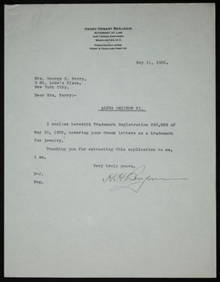 Henry Hobart Benjamin to Stella Perry Letter, May 11, 1932